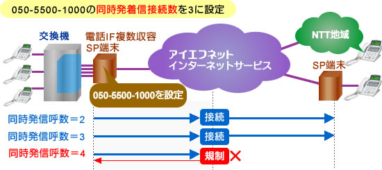 | 1つの050番号で、3チャネル以上の同時発信を可能にする050IP電話の付加サービスです。 NTT東日本・西日本のフレッツ光回線でご接続のお客様のみ、ご利用いただけます。基本チャネル数は2チャネルとなっており、1チャネル単位で追加できます。1番号につき最大32チャネルまで設定できます。 |