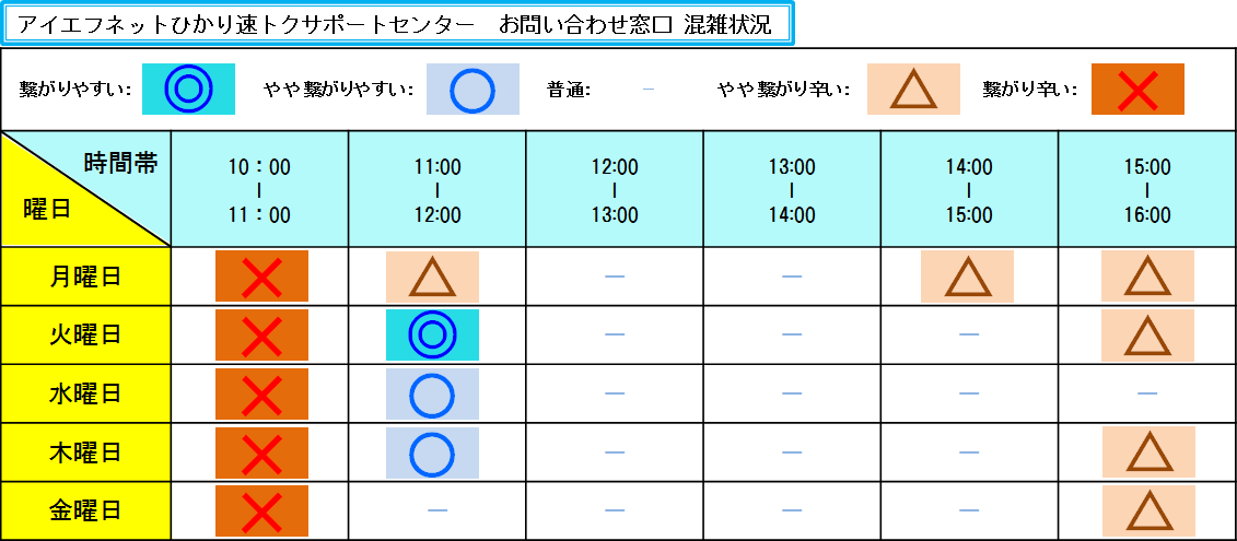 ひかり速トクサポートセンターの混雑状況は以下の通りとなります。